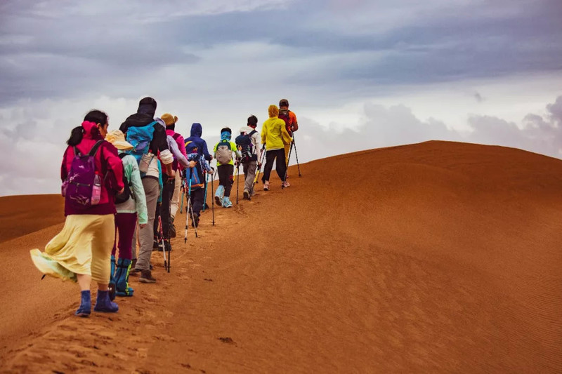 最熟悉腾格里沙漠线路的不是骆驼,而是脚印户外的领队。有他们带队,你不会担心迷失方向,如果发生意外,和队伍走散,他们会在最短的时间内找到你,带你回去。