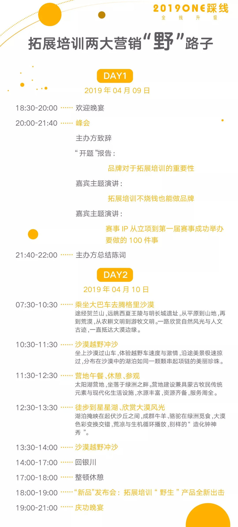 2019《ONE踩线》| 一年一度拓展培训/赛事行业营销大会+沙漠深度旅行