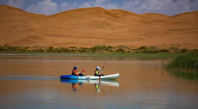 在沙漠玩皮划艇这个项目告诉你,只有你想不到的没有我们做不到的。在腾格里沙漠的天然湖泊上,来一场皮划艇大赛。一个团队里只有成员之间互相配合协作朝着共同的方向努力才能到达终点。