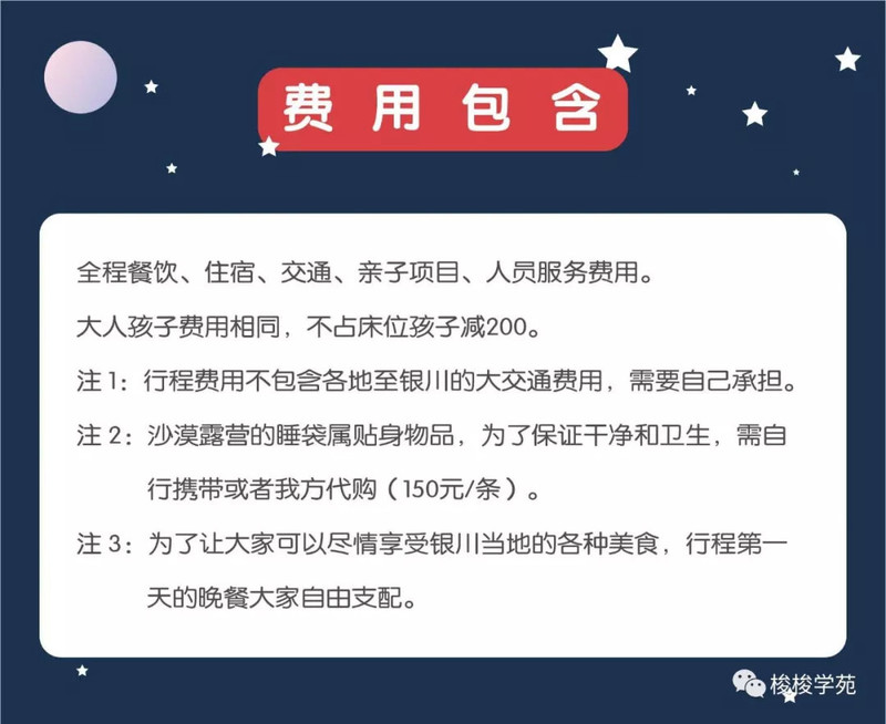 (不含各地到银川的往返大交通费用)