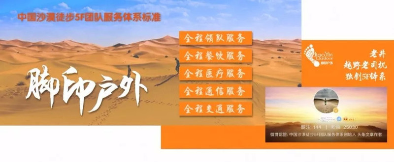 该体系是是国内沙漠旅行中最完善的后勤保障及服务标准,