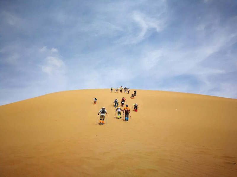 风沙烈日、饥饿疲惫都在考验着每一个人,如果只身一人我想没几个人能坚持下来,但是团队中所有人都在埋头前进,一旦掉队很可能就走失了。