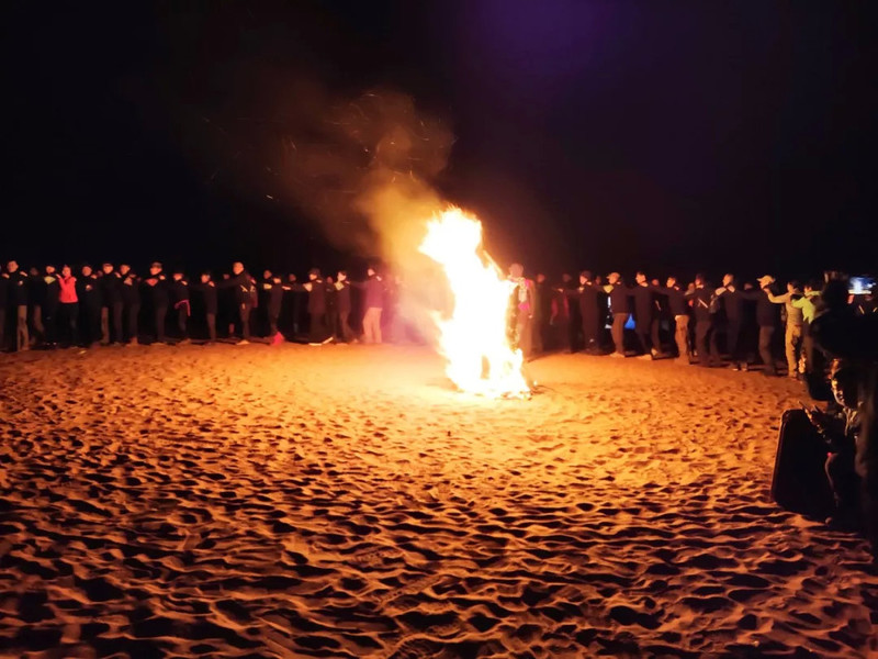 篝火晚会在梭梭学院的专属营地举办,拓展师带领草根知本的勇士们,跳着欢快的兔子舞,热情温暖了四月的沙漠夜晚。