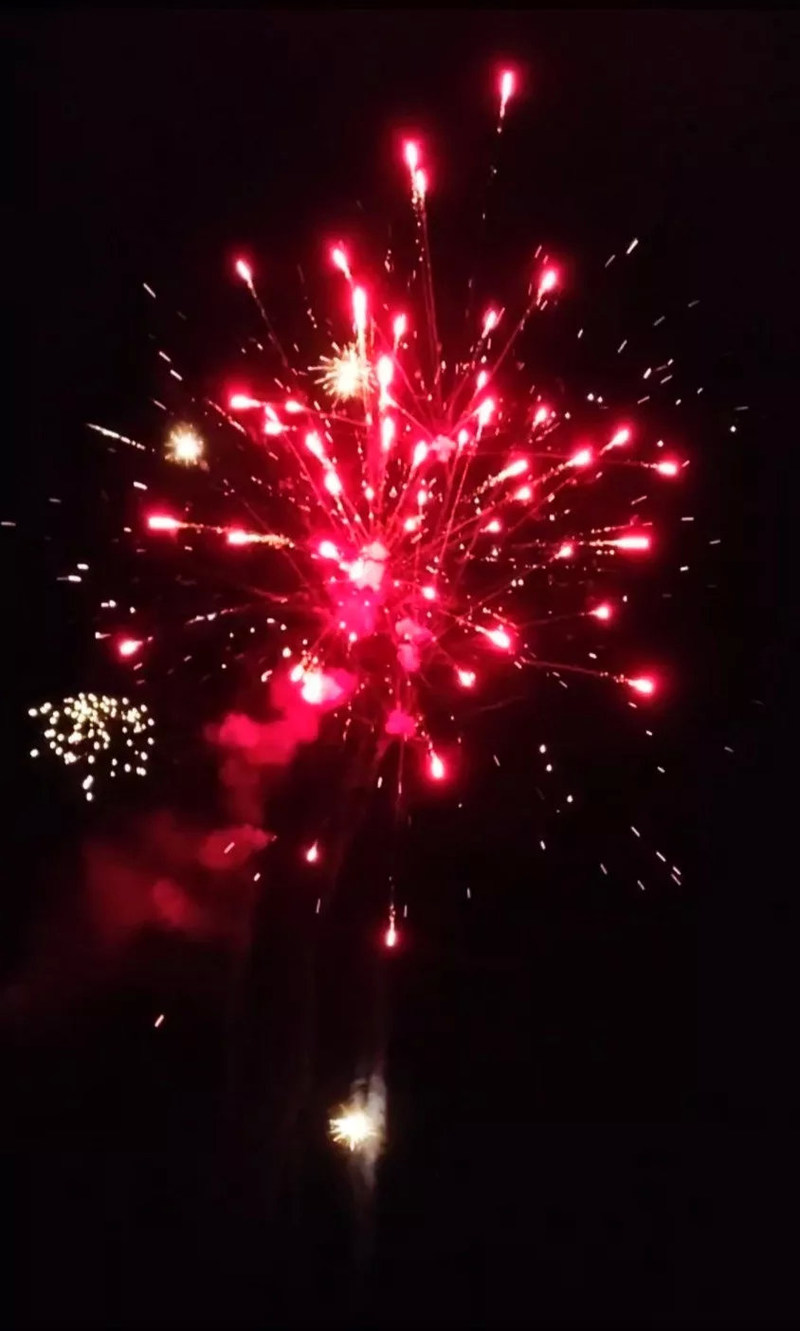 一朵朵烟花绽放在腾格里的夜空上,绚丽夺目,与熊熊燃烧的篝火相映成趣。