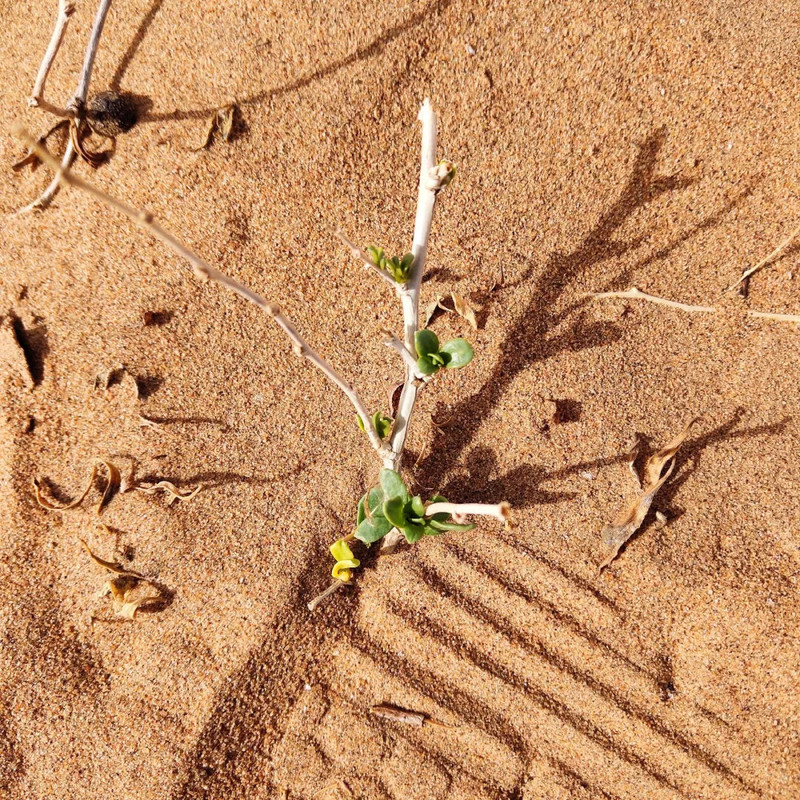 徒步的第一天,沙漠里风沙扑面,吹得人满头满脸都是。第二天,沙漠里不刮风了,但是气温却升得很高,行程也是意外的漫长。