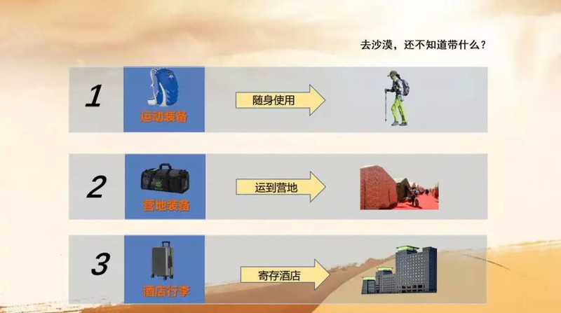 我们提供:帐篷、睡袋、登山杖、防沙套