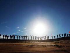 沙漠团建|夜访腾格里 今后让我们共同为企业的明天奋斗夜晚是神秘的沙漠是神秘的夜晚 沙漠 想想都很刺激27位来自重庆天华的朋友来了一场夜访腾格里之旅,趁着最后一点日光,踏上了征程。沙漠徒步本就是一件极具挑战性的活动,选择在夜晚摸行更是对个人信念、团队成员间相互信任、协作的一种磨练。当太阳消失在地平线,带走最后一点光亮,天高地阔,只剩下点点星光和弯弯月牙。前方路途遥远又漆黑一片,而留给他们的只有前进一个选项。未来对于任何一个人任何一个企业来说都是未知的,即使身处黑暗中,即使前方没有光亮,他们也只有步履不停,去探索去开拓属于企业的明天夜行 沙漠不仅是神秘刺激,对于征途来说有太多的不确定性。夜风来袭,气温骤降,寒气逼人瑟瑟发抖。就像企业的发展总会遇到大大小小的阻力,这时候只有一个凝聚力、战斗力满满的团队才能迎来下一个日出。深一脚,浅一脚,走在柔软的沙子上并不是舒适的感觉,一个人的路程总是遥远的,而